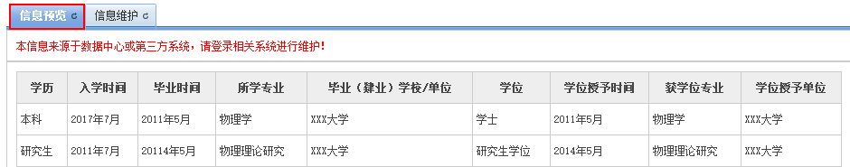 注:不同的“信息项”所展示的内容编辑框不尽相同,下文为您分别介绍个人信息维护过程中所涉及的内容编辑框,您可根据需要选择参考。